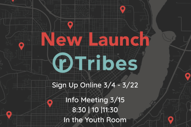 Jacob and Morgan Rendel, our rTribe team leads, will host a “Tell Me More” meeting during each of the three services on Sunday March 15 in the Youth Room, where you can learn more and ask questions (attendance is not required to join).